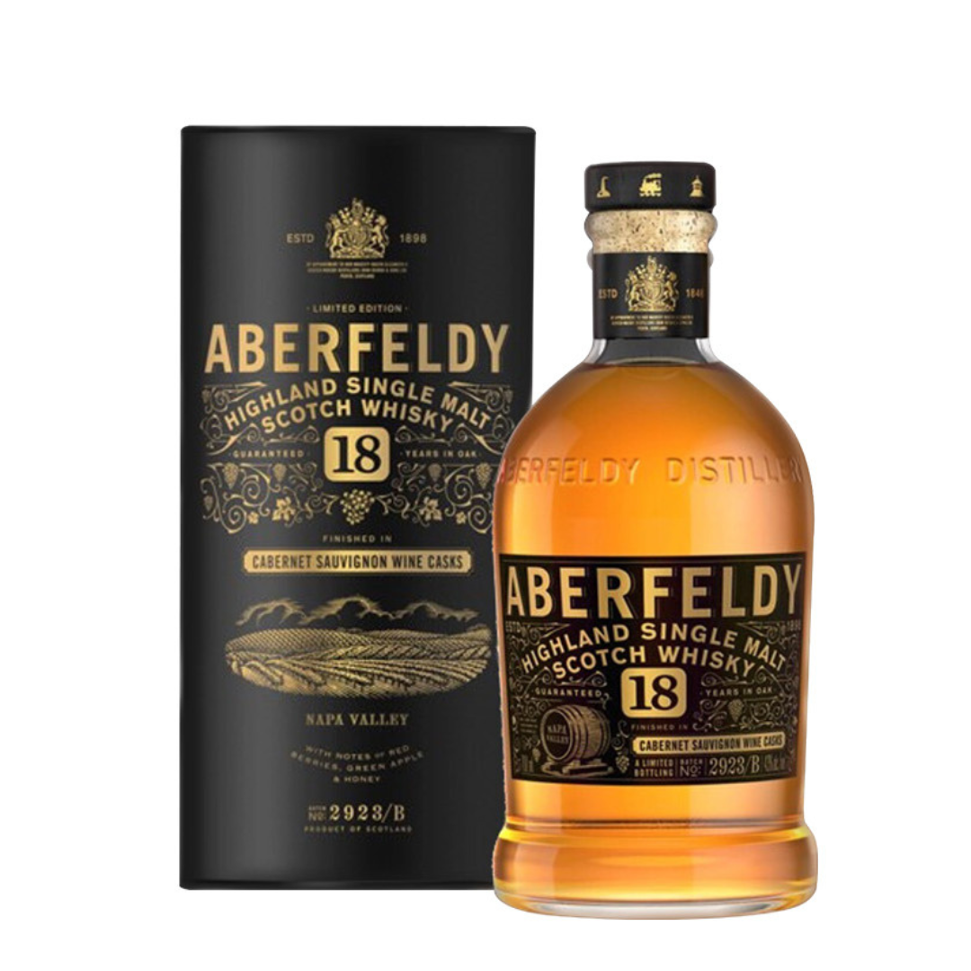 Aberfeldy 18 Year Old Napa Valley Red Wine Cask Finish Whisky as the name suggests, takes the distillery’s signature brand of Highland single malt Scotch whisky and pops it into Cabernet Sauvignon red wine casks sourced from the Napa Valley, California USA. The finishing period was about 15 months of the full maturation, it was preceded by an initial ageing in a combination of re-fill and hogshead casks.